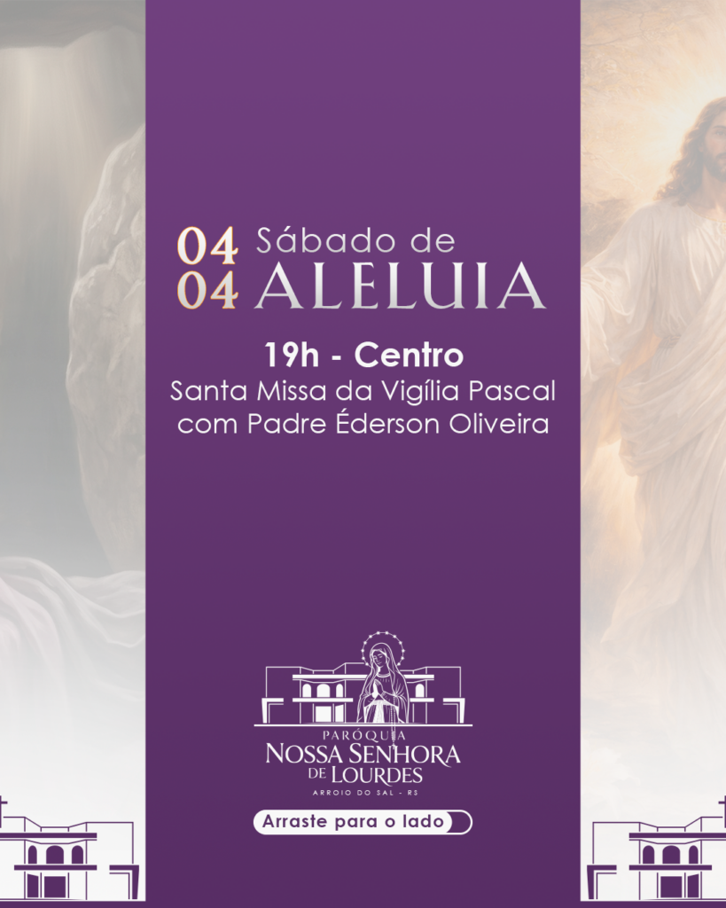 19h: Santa Missa da Vigília Pascal (levar vela e garrafa para água benta)
