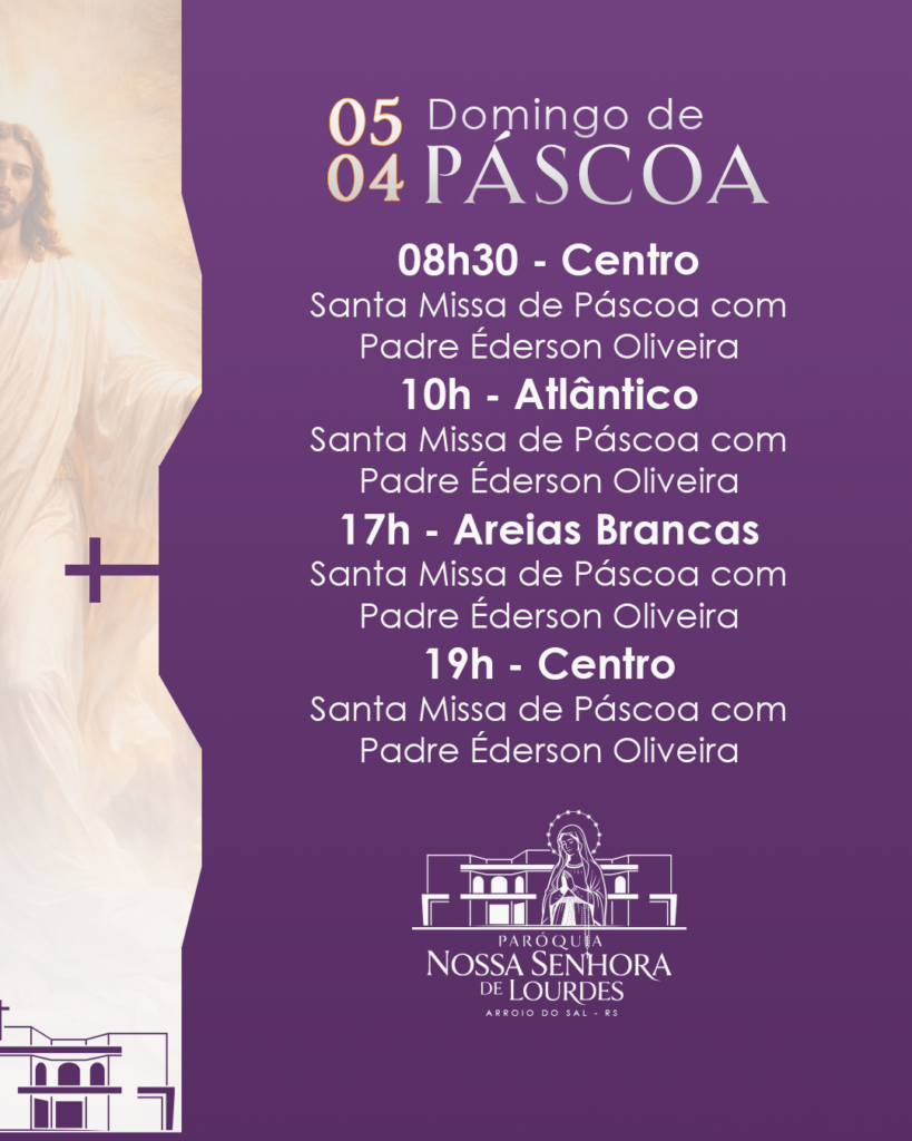 Encerrando a programação de Páscoa, o Domingo de Páscoa, dia 05, será marcado por missas em diferentes comunidades do município, celebrando a ressurreição de Cristo e renovando a esperança dos fiéis.