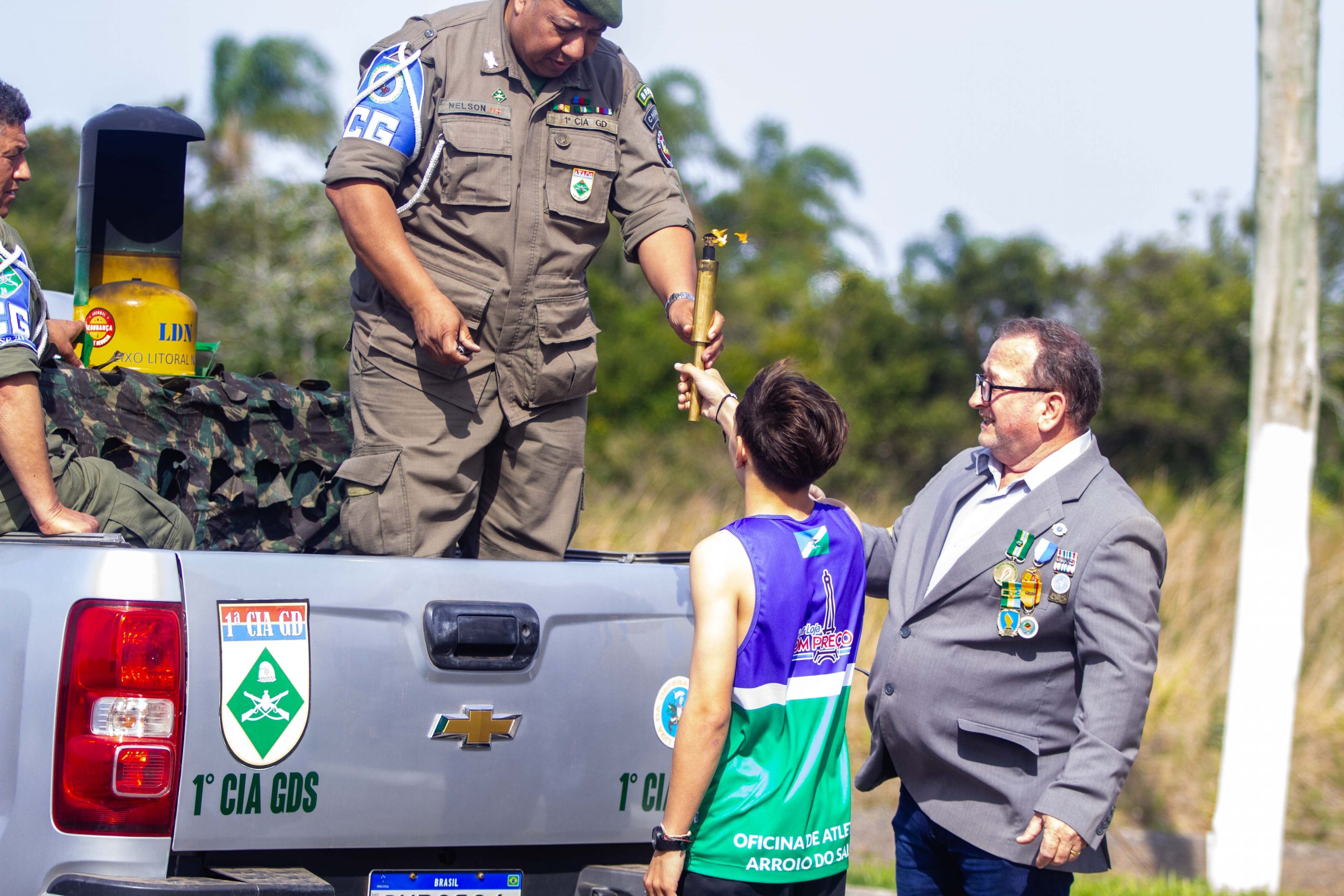 A cerimônia de recebimento do Fogo da Pátria, promovida pela Liga da Defesa Nacional de Arroio do Sal com o apoio da Prefeitura Municipal e a da Secretaria de Educação, contou com a participação de autoridades da cidade, alunos e membros de escolas municipais, além de lideranças da segurança pública, como Brigada Militar e Bombeiros Comunitários.