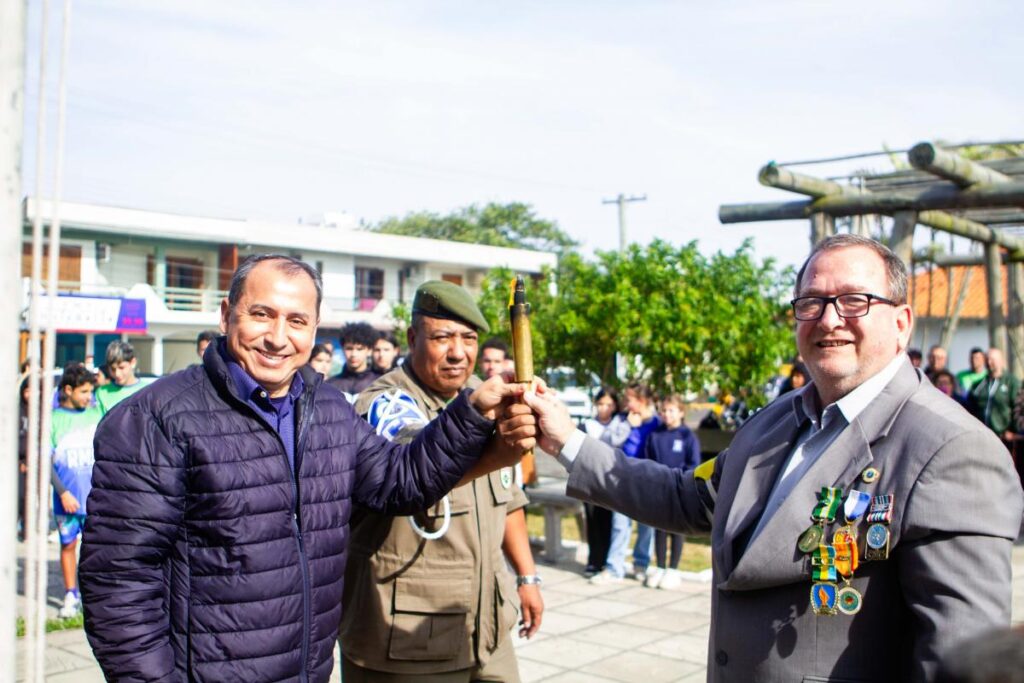 Também presente no desfile, o presidente da Associação de Veteranos da 1ª Companhia de Guardas, Mario Roberto Righi, realizou seu discurso parabenizando Arroio do Sal pela integração de jovens atletas, alunos e professores na cerimônia. “É muito importante e gratificante quando chegamos em um município e aqui estão crianças, professores e a comunidade, todos reunidos. Isso abrilhanta a nossa solenidade. Recebam com ardor patriótico esta chama sagrada”, afirmou.