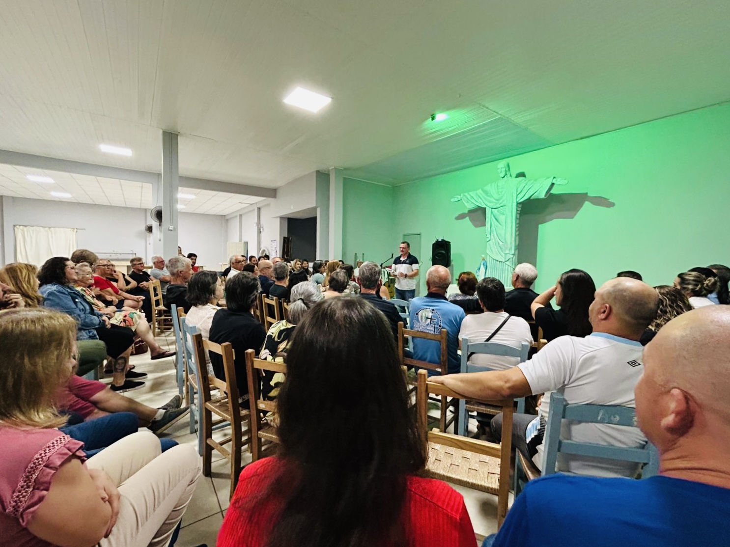 A Paróquia realizou, nesta terça-feira, dia 18, a Assembleia Paroquial no salão da Comunidade Areias Brancas, reunindo lideranças do Conselho Pastoral Paroquial (CPP), coordenadores das comunidades, movimentos e pastorais. O encontro, conduzido pelo novo pároco, Padre Nilso Zanella, marcou um momento de integração, escuta e alinhamento para o ano de 2026.