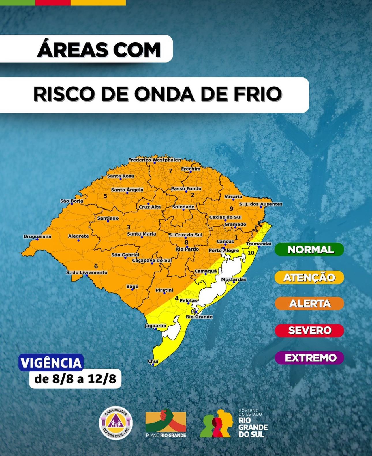 Após a passagem do ciclone, uma forte massa de ar frio avançará sobre o estado, derrubando as temperaturas e trazendo sensação térmica mais baixa no fim de semana.