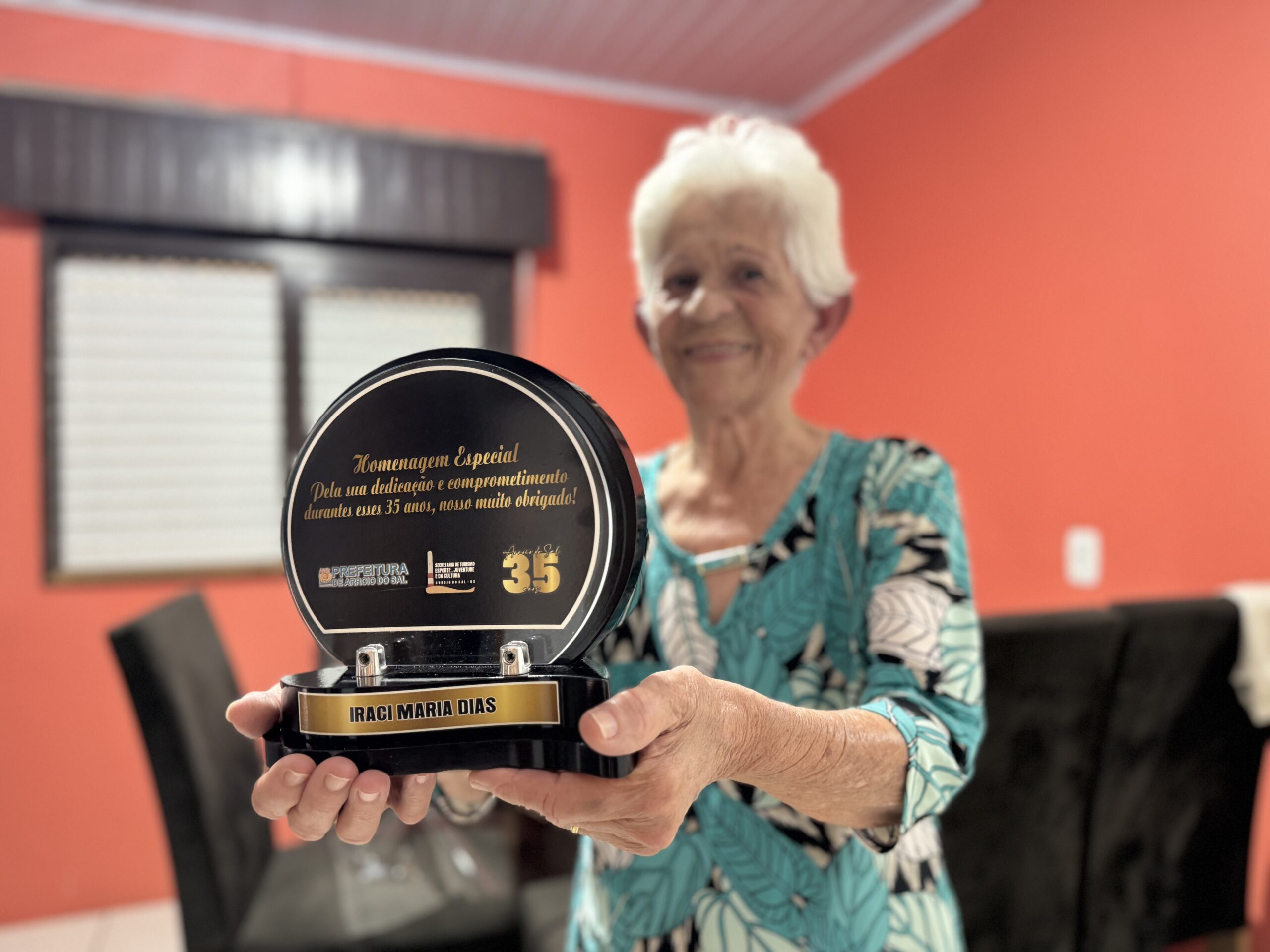 Além de representar as lavadeiras, Iraci também participou de momentos importantes da formação do município. Ao longo da vida, recebeu homenagens e um troféu reconhecendo sua contribuição para a história de Arroio do Sal. “Eu represento a história das lavadeiras e também o começo do Arroio do Sal”, afirma com orgulho.