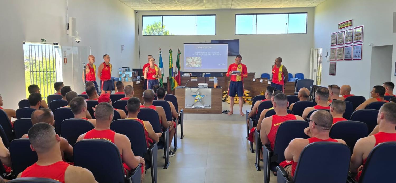Como parte da preparação para a temporada, na sexta-feira, dia 19, foi realizada uma atividade de integração e capacitação dos guarda-vidas, reunindo os profissionais que atuarão nas praias do município. O encontro ocorreu no plenário da Câmara de Vereadores de Arroio do Sal e foi conduzido pela sargento Carla Rodrigues Avozani, com apoio do sargento Spohn.