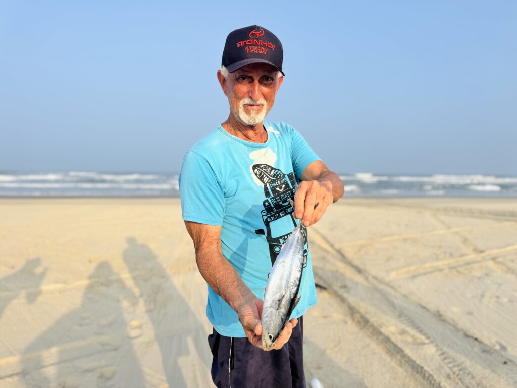 Ao final, os pescadores deixam um pedido simples, mas importante: “Cada um tem seu espaço. Tem área de pesca, área de surfe e área de banho… Se todo mundo respeitar, dá certo.” Porque, no fim, o mar é de todos, mas o sustento de muitos depende dele.