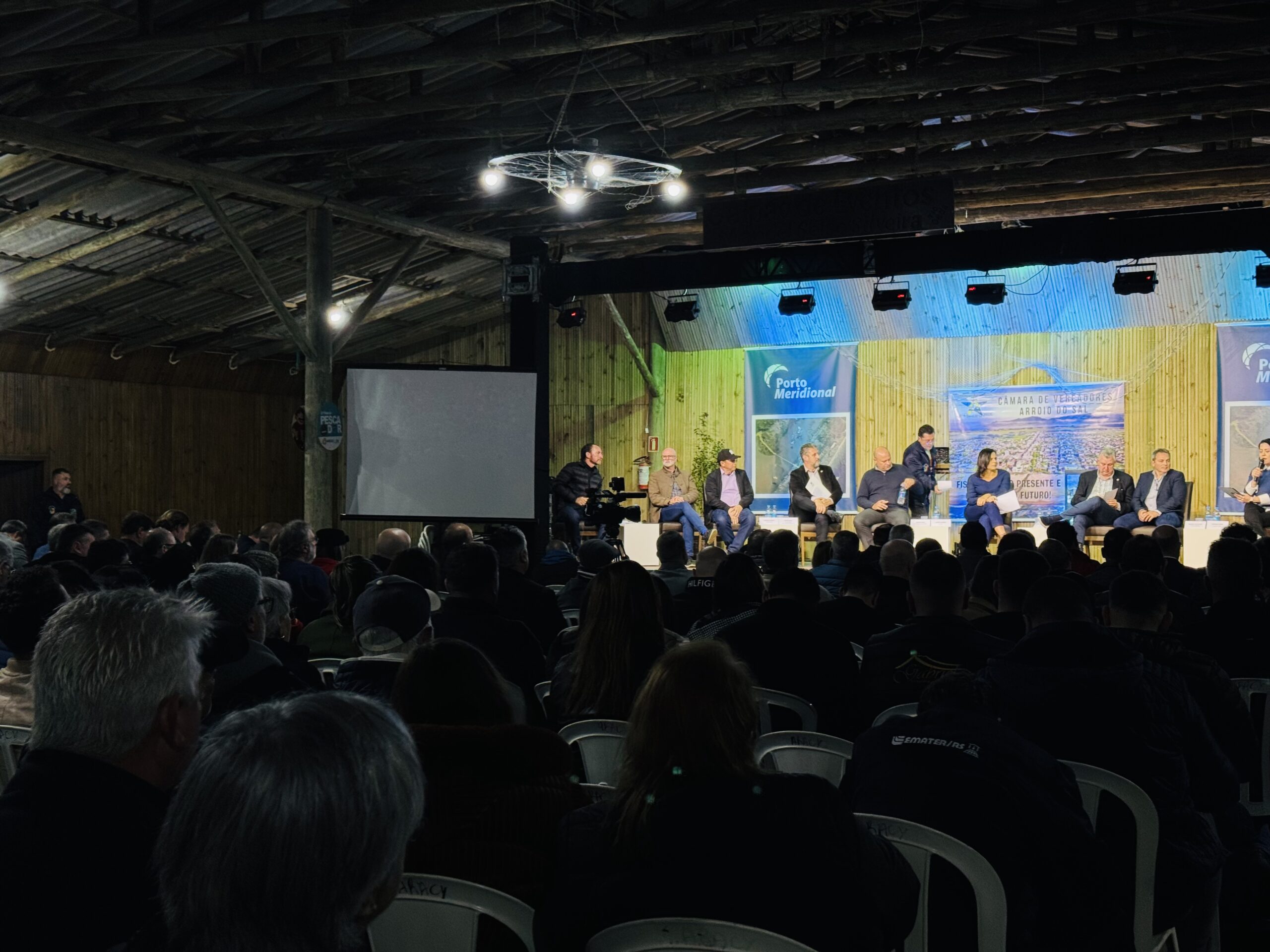 O Porto Meridional, previsto para ser instalado em Arroio do Sal, no Litoral Norte gaúcho, foi tema do Fórum Impactos do Porto Meridional durante a 23ª Festa do Pescador de Arroio do Sal. O evento foi realizado na sexta-feira (1º) e reuniu autoridades políticas, representantes do setor produtivo e a comunidade para debater os impactos regionais e estaduais do projeto.