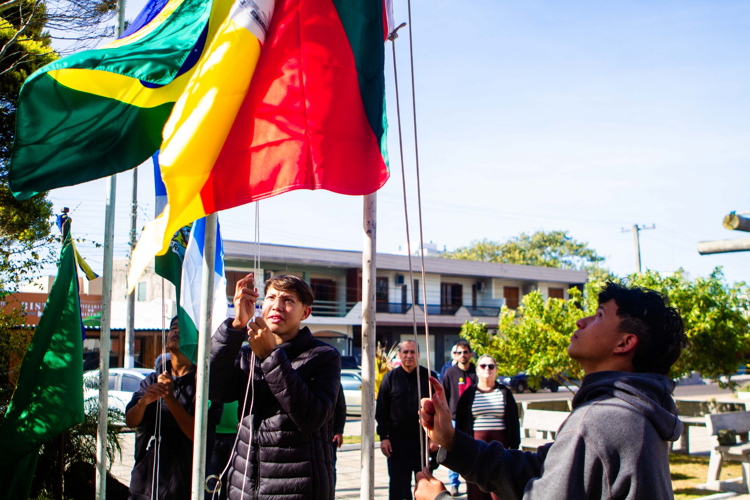 Reforçando o sentimento de patriotismo, orgulho e respeito à nação, a Semana da Pátria 2025 iniciou oficialmente em Arroio do Sal. A abertura oficia das atividades foi realizada nesta manhã desta segunda-feira (1º), na Praça da Emancipação, com a presença de autoridades municipais, representantes da Liga da Defesa Nacional e alunos da Escola Municipal Governador Leonel Brizola. Durante a cerimônia, foram hasteadas as bandeiras do Brasil, do Rio Grande do Sul e de Arroio do Sal, acompanhadas pelo canto do Hino Nacional.